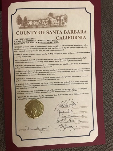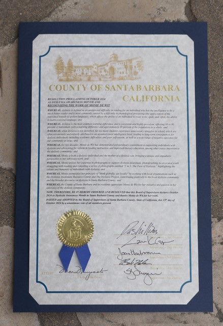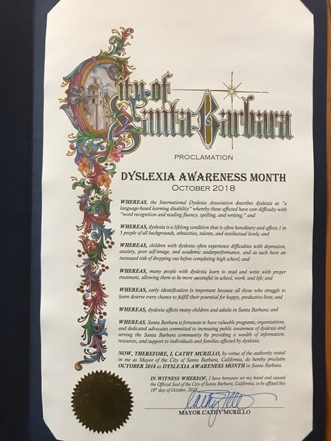 In 2014, we began a long and beneficial partnership with the Santa Barbara County Board of Supervisor to recognize the official month and to honor individuals who are dedicated to improving the lives of the 1 in 5 with dyslexia.