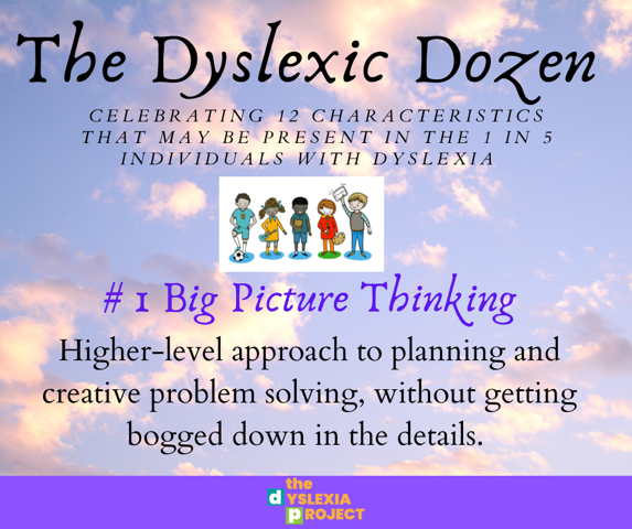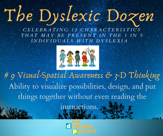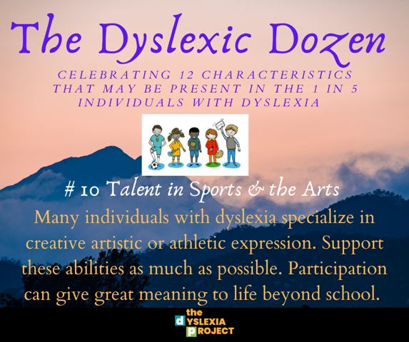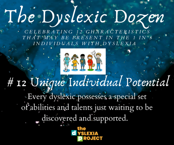 This series of graphics was originally inspired by those inspired by the song, “The Twelve Days of Christmas.” Instead of a holiday theme, we re-created it to have year-round value and a reminder to celebrate the strengths that are often—but not always—a part of dyslexia, too often unrecognized.